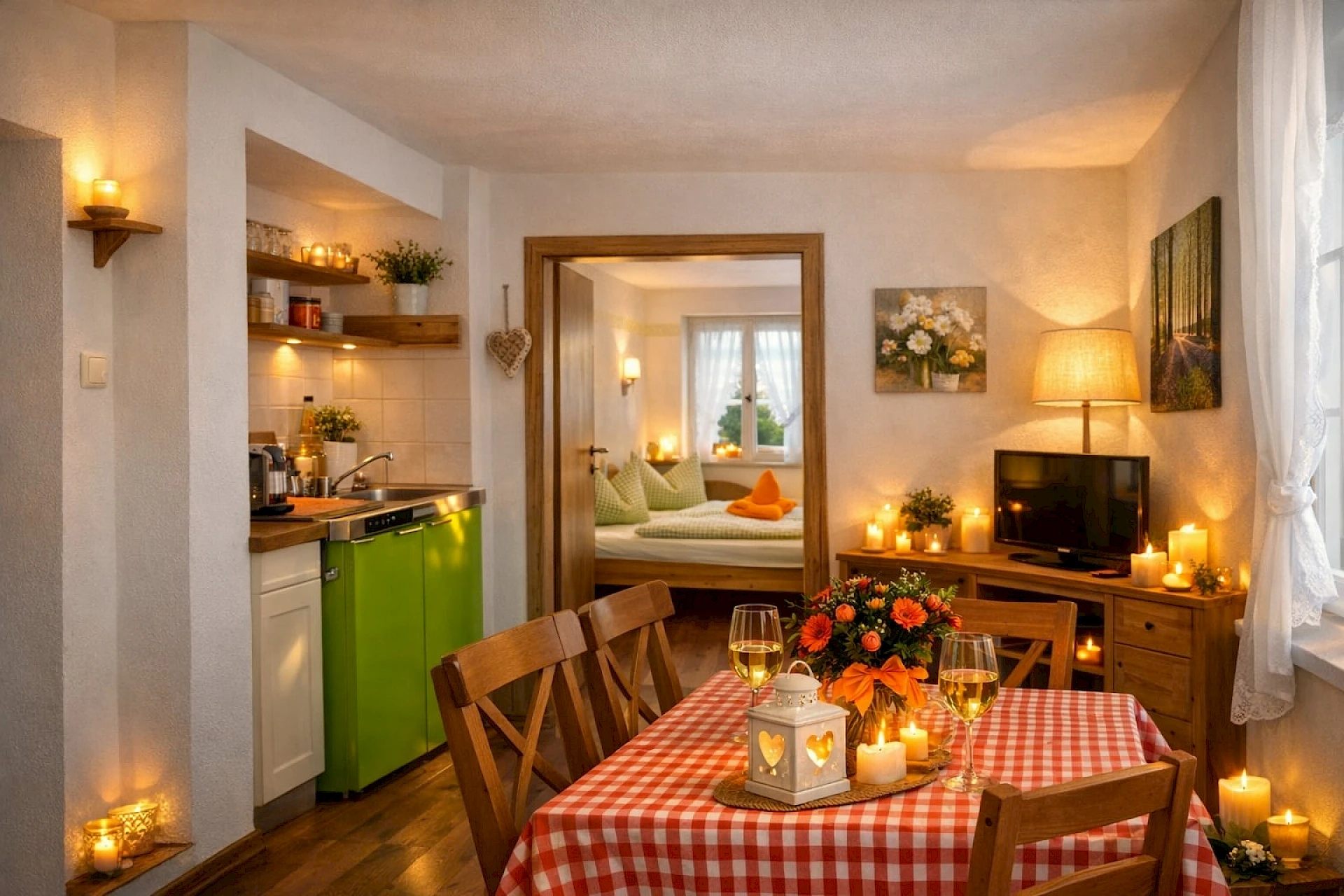 Individuell eingerichtete Zimmer und eine großzügige Ferienwohnung — auch für Monteure und Langzeitgäste.